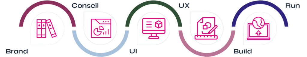 Nous plongeons dans l’univers de l’UX, où chaque persona est une boussole guidant l’idéation et le prototypage, avec des tests utilisateurs qui affinent jusqu’à la perfection. L’UI prend vie à travers un design captivant et des logos iconiques, incarnant votre marque à chaque clic.